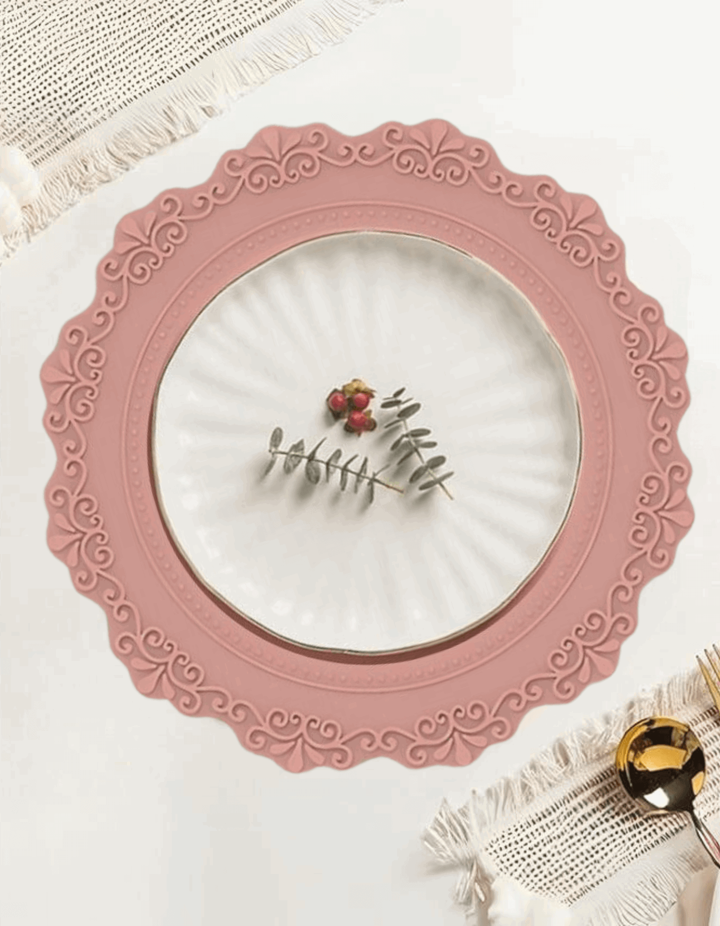 The French-Style Silicone Round Place Mat with Lace Details is a fusion of classic French elegance and modern functionality. Crafted with meticulous attention to detail, the French-Style Silicone Round Place Mat boasts unique French-inspired lace patterns and solid Nordic colors, adding a touch of luxury to any table setting. The three-dimensional texture enhances their visual appeal and sophistication. Available in three different sizes and an array of captivating colors, the French-Style Silicone Round Place Mat offers versatility to suit your personal style and table aesthetics. Made from premium food-grade silicone, the French-Style Silicone Round Place Mat is waterproof, non-slip, and heat resistant, ensuring durability and safety during mealtime. It is easy to maintain, simply wipe clean with a damp cloth for quick cleanup, or rinse under running water for a deeper clean.