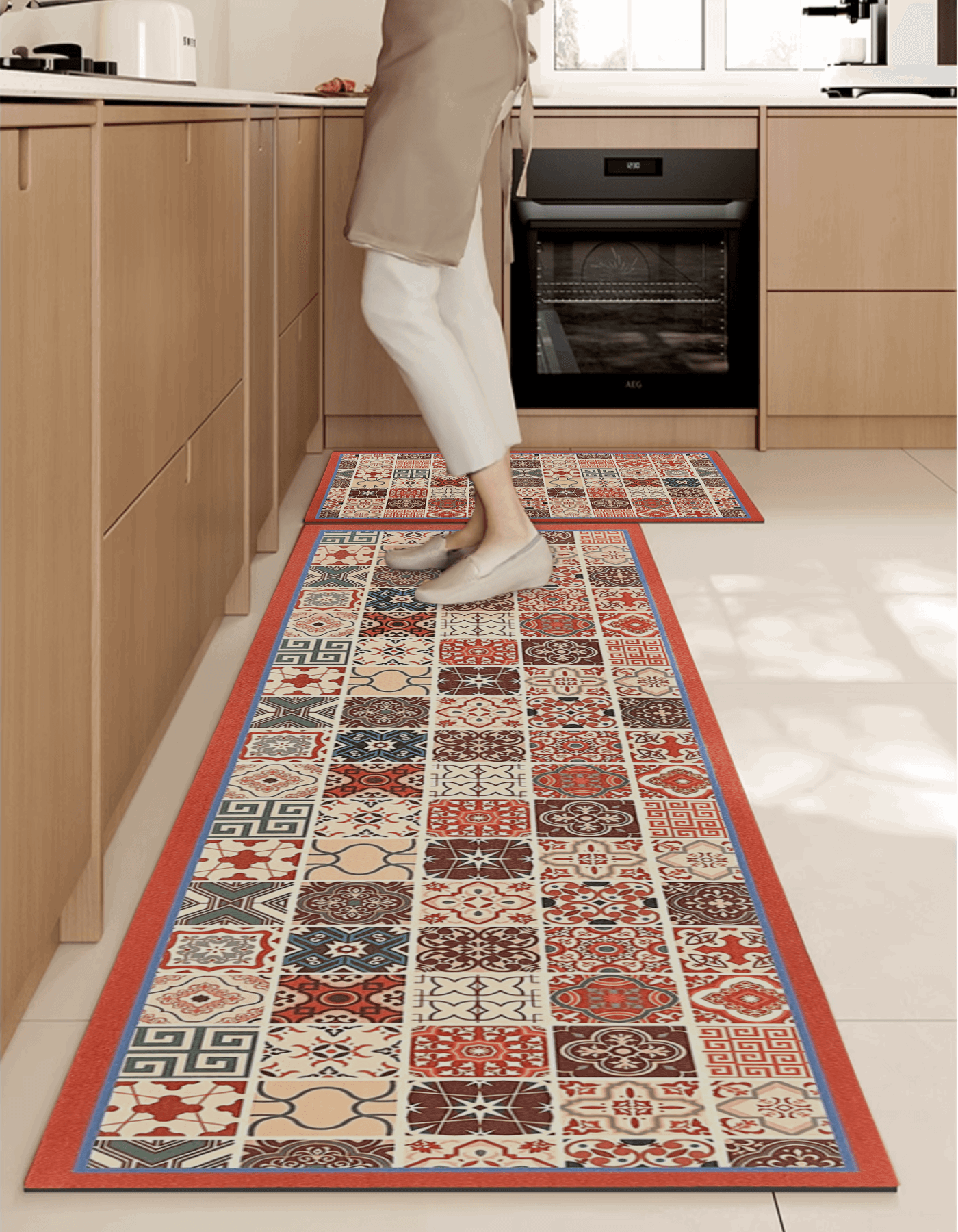 Maison Matta brings Talavera Tile Kitchen Mat to your culinary space, designed to enhance both comfort and cleanliness. Constructed from high-quality vinyl materials, our Talavera Tile Kitchen Mat offers a resilient and durable surface that can endure the demands of a busy kitchen environment. Its cushioned texture provides relief for feet and legs, making extended cooking and meal prep sessions more comfortable. The Talavera Tile Kitchen Mat is engineered to resist spills, stains, and wear, making them easy to clean and maintain. Its waterproof and non-absorbent properties protect your kitchen floor from accidental spills and food splatters, while also preventing potential slips and falls.